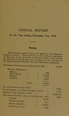 Credit: [Report 1933] / Medical Officer of Health, Aldershot Borough. Source: Wellcome Collection.