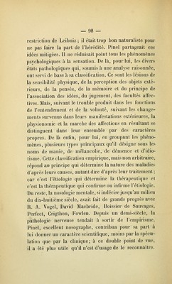 Philippe Pinel et son oeuvre au point de vue de la médecine mentale.
