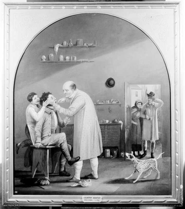 M0007703: A tooth drawer extracting a tooth. In copyright. Source: Wellcome Collection.