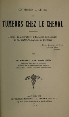 Contribution à l'étude des tumeurs chez le cheval ... / par Ch. Commes.