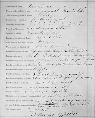 Credit: M0019196: Character determining test filled in by Hugh Owen Thomas, 17 March 1878. Source: Wellcome Collection.