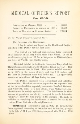 [Report 1909] / Medical Officer of Health, Bury (Union) R.D.C.