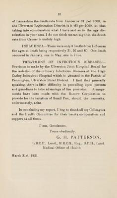 [Report 1920] / Medical Officer of Health, Ulverston U.D.C.