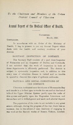 [Report 1920] / Medical Officer of Health, Ulverston U.D.C.