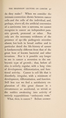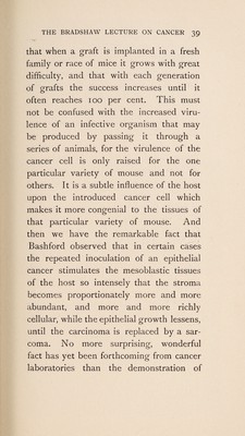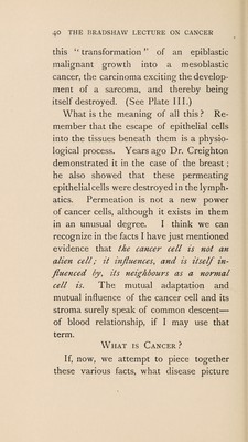 The Bradshaw lecture on cancer : delivered at the Royal College of Surgeons of England, on Wednesday, Decmber 7th, 1910 / by Sir Alfred Pearce Gould.