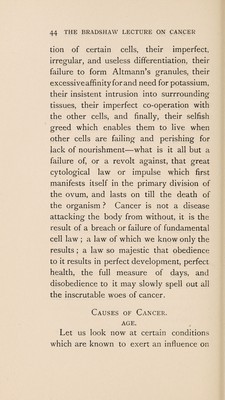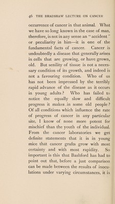 The Bradshaw lecture on cancer : delivered at the Royal College of Surgeons of England, on Wednesday, Decmber 7th, 1910 / by Sir Alfred Pearce Gould.