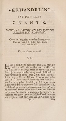 Verhandeling over de verloskunde ... / Verbeeterd en in 't licht gegeeven door den Heer Morizot Deslandes ... Vooraf gaat een redenvoering van den uitgeever ... en aan 't einde is gevoegd een verhandeling van de Heer Crantz ... in 't Nederduitsch vertaald door C. Truntza. [Waar agter gevoegt is een ontleed- geneeskundige verhandeling over een bevrugt, edog wanstallig menschen eij, door een miskraam van drie maanden voortgetbragt ... beschreeven door C.A. Maday ... 't welk gevolgt werd door een ontleedkundige verhandeling over de blaasband in den mensch ... door Phil. Adolph. Boehmer].