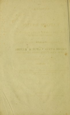 Credit: Remarks on vapour baths, air-pump vapour baths, portable sudatory baths, sulphureous fumigation baths, and cold and tepid shower baths; Portobello, near St. George's Church, Sheffield : including extracts from medical and other authorities, and reports of cases of various diseases, relieved or cured. Source: Wellcome Collection.