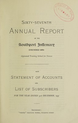 Credit: Annual report : 1937 / Southport Infirmary. Source: Wellcome Collection.