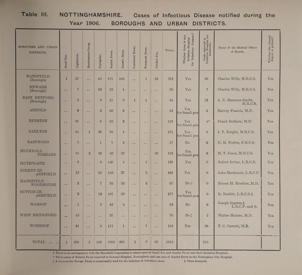 [Report 1906] / Medical Officer of Health, Nottinghamshire County Council.