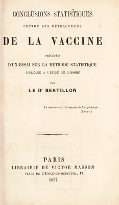 Conclusions statistiques contre les détracteurs de la vaccine : précédées d'un Essai sur la méthode statistique appliquée à l'étude de l'homme / par le dr. Bertillon.