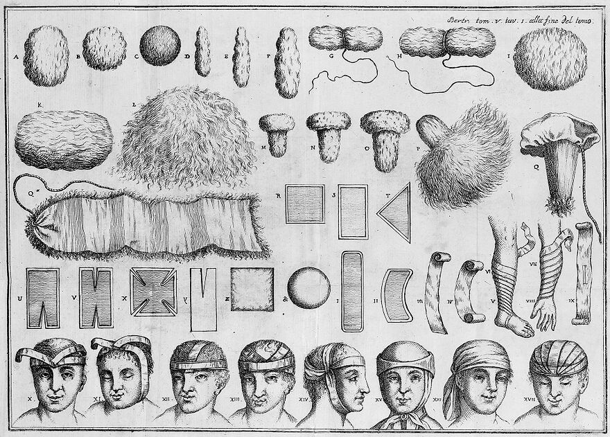 Credit: M0015620: Bandages and dressings, from Bertrandi: <i>Opere</i>, 1786. Source: Wellcome Collection.