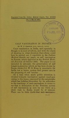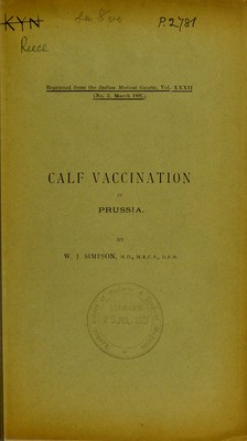 Credit: Calf vaccination in Prussia / by W. J. Simpson. Source: Wellcome Collection.