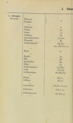 Tabellarische Übersicht der einfachen Mineralien : nach ihren krystallographisch-chemischen Beziehungen / geordnet von P. Groth.