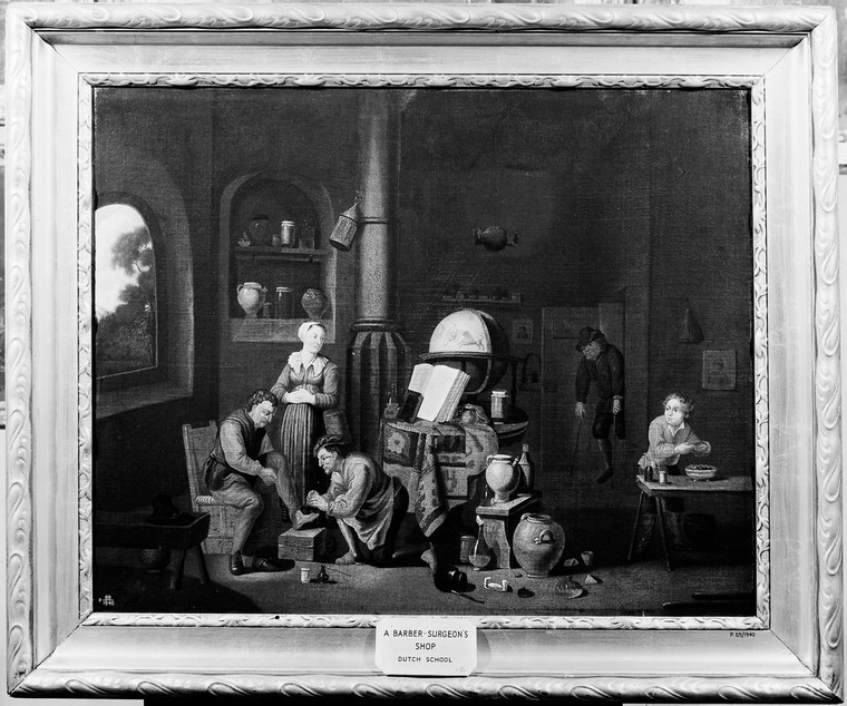 M0007659: A surgeon treating an injury to a man's foot. In copyright. Source: Wellcome Collection.