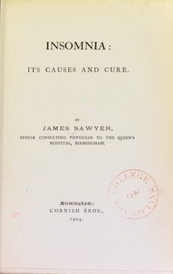 Credit: Insomnia: its causes and cures / by James Sawyer. Source: Wellcome Collection.