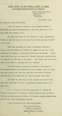 Credit: [Report 1957] / Medical Officer of Health, Ashbourne U.D.C. Source: Wellcome Collection.