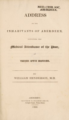 Credit: Address to the inhabitants of Aberdeen, respecting the medical attendance of the poor, at their own houses / [William Henderson]. Source: Wellcome Collection.