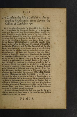 Credit: A charter granted to the apothecaries of London, the 30th of May, 13 Jac. 1 / Translated and printed for the better information of the said apothecaries in their duty to the city of London, the College of Physicians, and their own society. Source: Wellcome Collection.
