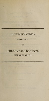 Credit: Disputatio medica inauguralis de phlegmasia dolente puerperarum ... / Eruditorum examini subjicit David Barry. Source: Wellcome Collection.