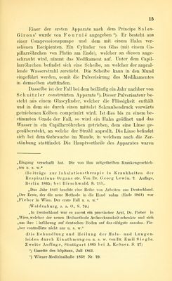 Die Inhalation medicamentöser Flüssigkeiten und ihre Verwerthung bei Krankheiten der Athmungsorgane : zum Gebrauche für Ärzte / erläutert von Friedrich Fieber.