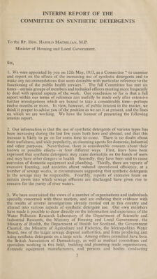 Interim report of the Committee on Synthetic Detergents.