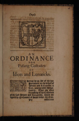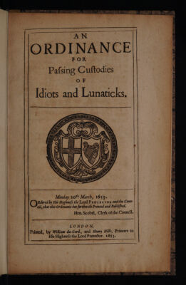Credit: An ordinance for passing custodies of idiots and lunaticks. Monday 20th March, 1653 / Ordered by His Highness the Lord Protector and the Council. Source: Wellcome Collection.