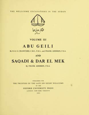 The Wellcome excavations in the Sudan / [Frank Addison].