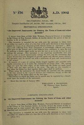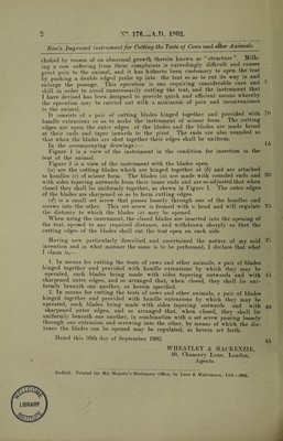 Credit: An improved instrument for cutting the teats of cows and other animals / [Allen John Ross]. Source: Wellcome Collection.