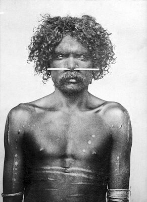 Credit: M0012535: Man with arm cicatrization, Queensland. / M0012535EB: Man with extended ear lobes, Rubriand / M0012535EC: Man with nose pin, Northern Australia / M0012535ED: Woman with nose pin, Northern Australia. Source: Wellcome Collection.