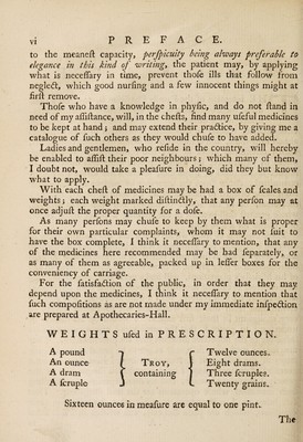 ![THE FAMILY PHYSICIAN: BEING A COLLECTION O F Useful Family Remedies. TOGETHER WITH Plain and Full DIRECTIONS for Adminiftering them, and properly Nurling the Sick, where the Advice of aPHYsiciAN is difficult to be procured. ALSO Some Useful Observations upon DIET. AND A Short Account of thole Cases in which BLEEDING and BLISTERS are really ferviceable. By HUGH SMITH, Apothecary. The EIGHTH EDITION, confiderably enlarged, and interleaved for the Benefit of the Readers own Remarks. LONDON, Printed for the AUTHOR, at his Chymical Warehouse^ No. 57. in Newgate-Street: And publifhed by G. Kearsly, No. i. Ludgate-Street, London* [ Price One Shilling and Six-Pence, or Two Shillings in Boards. ]](https://iiif.wellcomecollection.org/image/b30788754_0002_0001.jp2/full/800%2C/0/default.jpg)