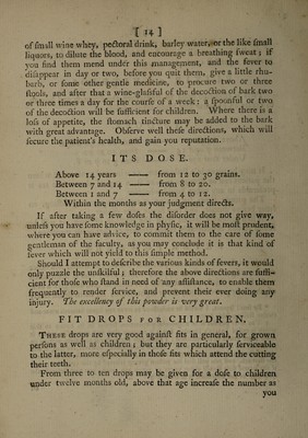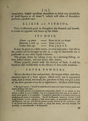 ![THE FAMILY PHYSICIAN: ^ * r § << Ot £ A J'h *c> V. C^O -Q BEING A 2 ^ LLECTION O F seful Family Remedies. / TOGETHER WITH Plain and Full DIRECTIONS for Adminiftering them, and properly Nurfing the Sick, where the Advice of a P h v s i c i a n is difficult to be procured. ALSO Some Useful Observations upon DIET. AND> A Short Account of thofe Cases in which BLEEDING and BLISTERS are really ferviceable. By HUGH SMITH, Apothecary. The EIGHTH EDITION, confiderably enlarged, and interleaved for the Benefit of the Readers own Remarks. LONDON, Printed for the AUTHOR-, at his Chymical Warehouse No. 57. in Newgate-Street: And publillied by G. Kearsly, No. i. Ludgate-Street, London. [ Price One Shilling and Six-Pence, or Two Shillings in Boards. ]](https://iiif.wellcomecollection.org/image/b30788754_0001_0001.jp2/full/800%2C/0/default.jpg)