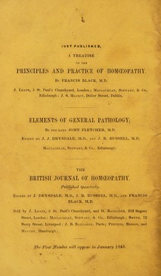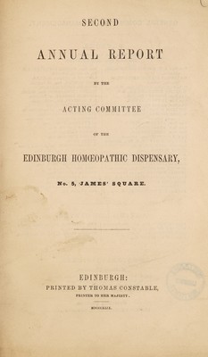 Credit: Report of the Edinburgh Homoeopathic Dispensary, Spring Gardens, Stockbridge, during 1841-1842 / [By Drs. Russell and Black]. Source: Wellcome Collection.