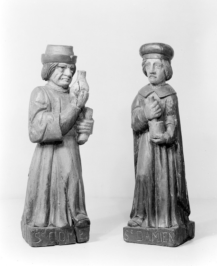M0014120: Statues of Saint Cosmas and Saint Damian. Attribution 4.0 International (CC BY 4.0). Source: Wellcome Collection.
