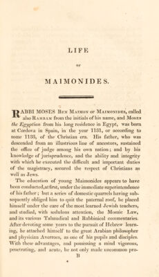 The reasons of the laws of Moses. From the More Nevochim of Maimonides / [Translated] by James Townley. With notes, dissertations, and a life of the author. By James Townley.