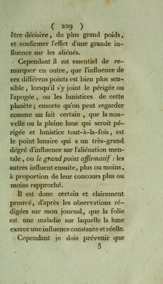 La philosophie de la folie, où l'on prouve que cette maladie doit plutôt être traitée par les secours moraux que par les secours physiques : et que ceux qui en sont atteints, éprouvent d'une manière non équivoque l'influence de la lune / par Joseph Daquin.