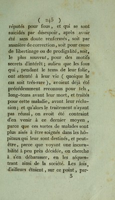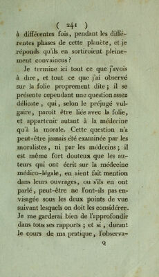 La philosophie de la folie, où l'on prouve que cette maladie doit plutôt être traitée par les secours moraux que par les secours physiques : et que ceux qui en sont atteints, éprouvent d'une manière non équivoque l'influence de la lune / par Joseph Daquin.