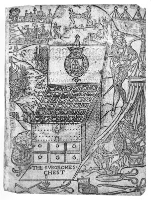 Credit: M0007463: Illustration of a military medicine chest, 16th century. Source: Wellcome Collection.