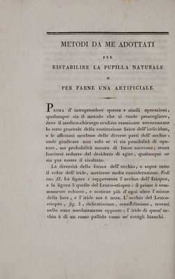 Ricerche sulle pupille artificiali. Con cinque tavole incise in rame e colorite / [Paolo Assalini].