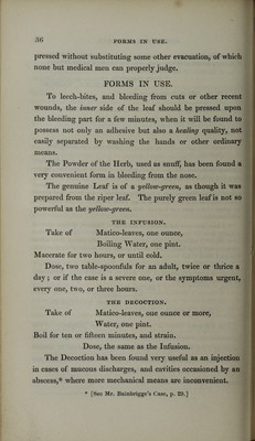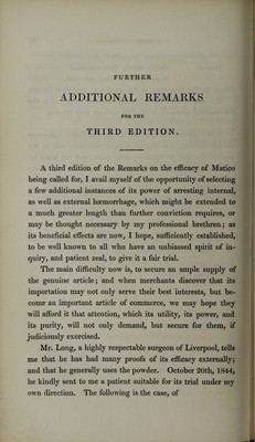 Credit: Remarks on the efficacy of matico, as a styptic and astringent : with additional cases, mode of exhibition, &c. / by Thos. Jeffreys. Source: Wellcome Collection.