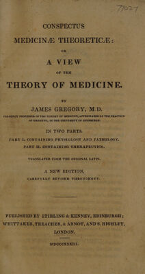 Conspectus medicinae theoreticae, or a view of the theory of medicine. In two parts. Pt. 1. Containing physiology and pathology. Pt. 2. Containing therapeutics / Translated from the original Latin.