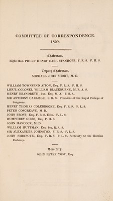 Credit: Address of Earl Stanhope, President of the Medico-Botanical Society, at the anniversary meeting, January 16, 1829. Source: Wellcome Collection.
