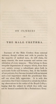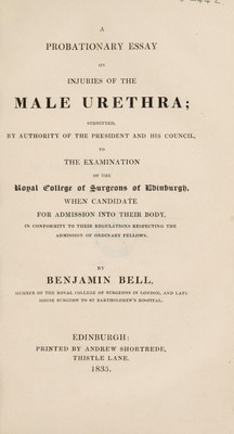 A probationary essay on injuries of the male urethra / [Benjamin Bell].