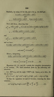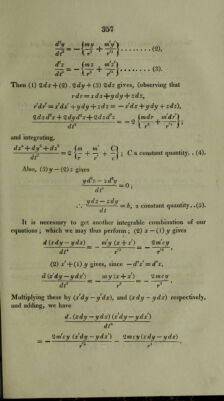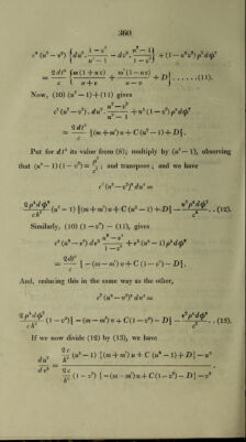 ![c* (u° — v2) \du~-dv2.-ni + (1—JiV)pd<pf ( u — 1 I — v) <2.dtz (m(\+uv) ^ m’(\—uv) t ^ c l u + v u — v j Now, (10) (if— 1) H- (11) gives 2_ 2 c (if — v~). d if. —-f- id (1 — v~) a d <p~ u~ — 1 O flf- = - { (m + m) u-t C (if — 1) -+- D }. c Put for dt3 its value from (8); multiply by (id— l), observing © that (id — 1) (1 — v2) = ; and transpose; and we have (12). 2/2 2\2 J 2 c (?/ — v j du == 2/0 (if - 1) \(m-)rm)u-\- C (id — l) -f D] — - P f^ . . ch~ c Similarly, (10) (1 — v2) — (11), gives c2 (if1 - V*) dv* ^ + V% (id - 1) p*d(p* Qdf- — - { — (m — m) v + C(l — v') — D}. c And, reducing this in the same way as the other, c~ (id — v2)2 did — -p d(j) ^ —v2)[ — (m — m')v + C(l—v*) — D] — -■? . . (13). c If r If we now divide (12) by (13), we have C) /> did Id ~ ^ i(m + ”*')u + C (u1 - l) + D} — id yj (1 — v~) { ~(m — m')u + C(l — vz) — D} — id](https://iiif.wellcomecollection.org/image/b29297230_0396.jp2/full/800%2C/0/default.jpg)