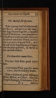 Credit: A choice manuall of rare and select secrets in physick and chyrurgery. Collected and practised by the Right Honourable, the Countess of Kent, late deceased / Whereto are added several experiments of the virtues of Gascon pouder and Lapis contra Yarvam, by a professor of physick. As also most exquisite wayes of preserving, conserving, candying, &c. Source: Wellcome Collection.
