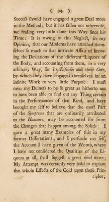 The system of the womb, with a particular account of the menses, independent of a plethora: to which are subjoin'd, a few observations relating to cold, and its effects upon the body / [Thomas Simson].