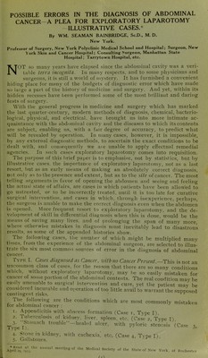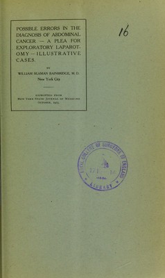 Possible errors in the diagnosis of abdominal cancer : a plea for exploratory laparotomy : illustrative cases / by William Seaman Bainbridge.