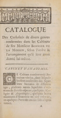 Catalogue raisonné d'une collection ... de diverses curiosités ... / contenues dans les cabinets de M. Bonnier de la Mosson. Par E.F. Gersaint.