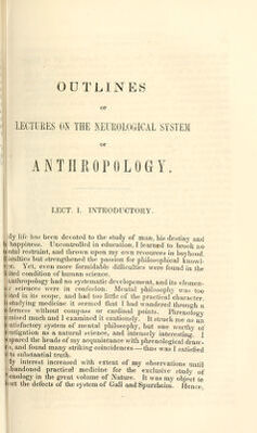 Outlines of lectures on the neurological system of anthropology : as discovered, demonstrated and taught in 1841 and 1842 / By Joseph R. Buchanan.