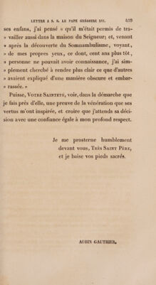 Histoire du somnambulisme chez tous les peuples, sous les noms divers d'extases, songes, oracles et visions; examen des doctrines théoriques et philosophiques de l'antiquité et des temps modernes ... sur ses causes, ses effets, ses abus, ses avantages, et l'utilité de son concours avec la médecine / par Aubin Gauthier.